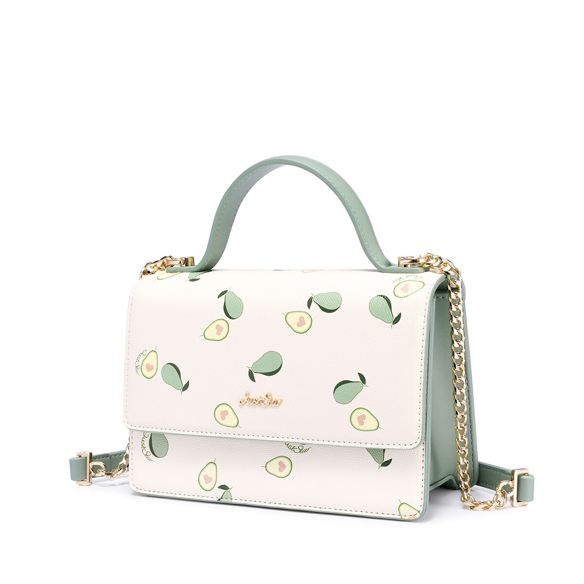 JUST STAR Women's PU Leather Handbags Ladies Fashion Avocado Fruit Printing Shoulder Tote Purse Female Chains Flap Messenger Bag