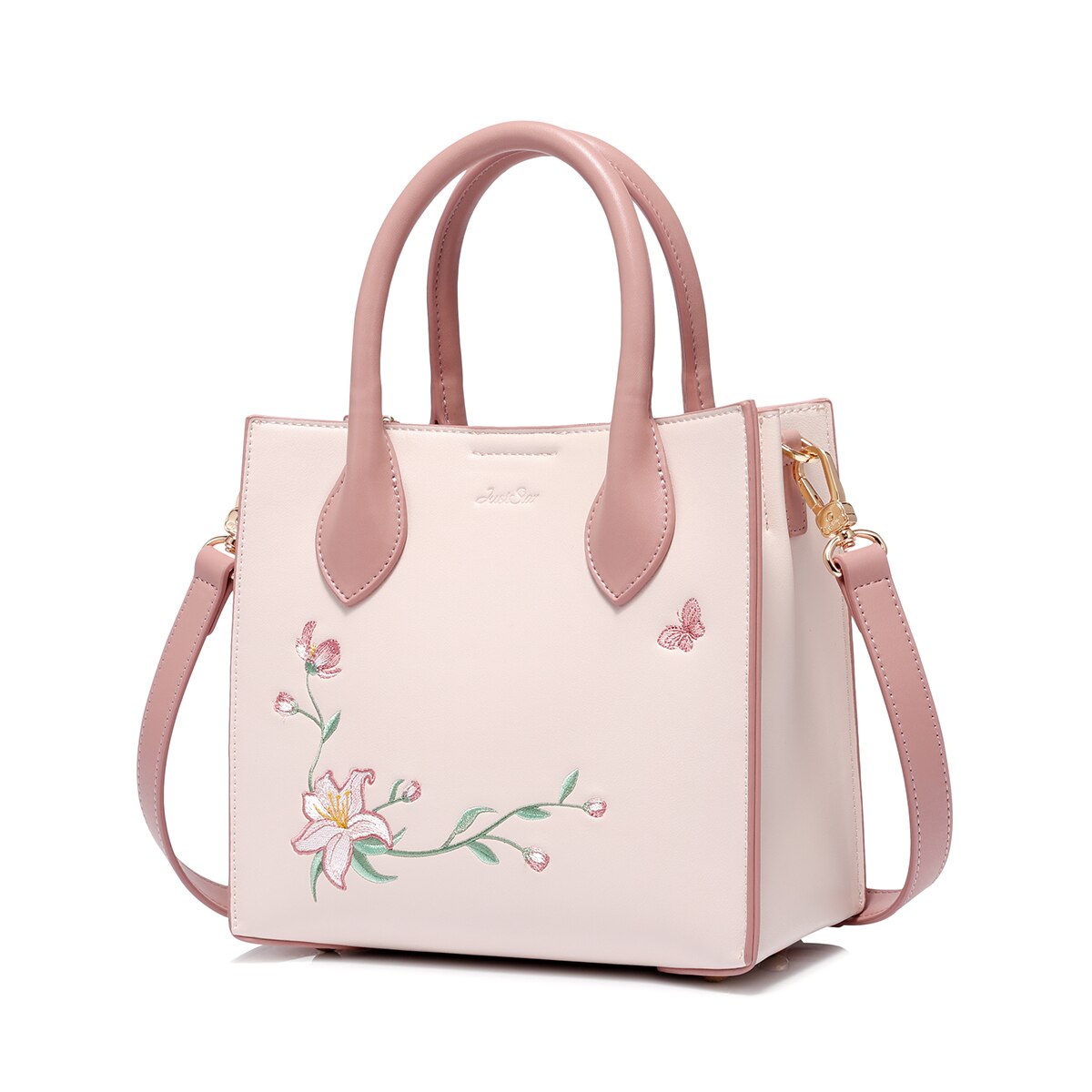 JUST STAR Women's PU Leather Handbags Ladies Fashion Embroidery Flower Shoulder Tote Purse Female Pink Color Messenger Bag